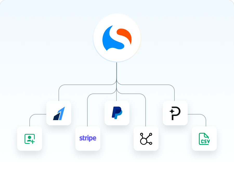 Accept payments via Stripe, PayPal, Razorpay, Paddle, and More