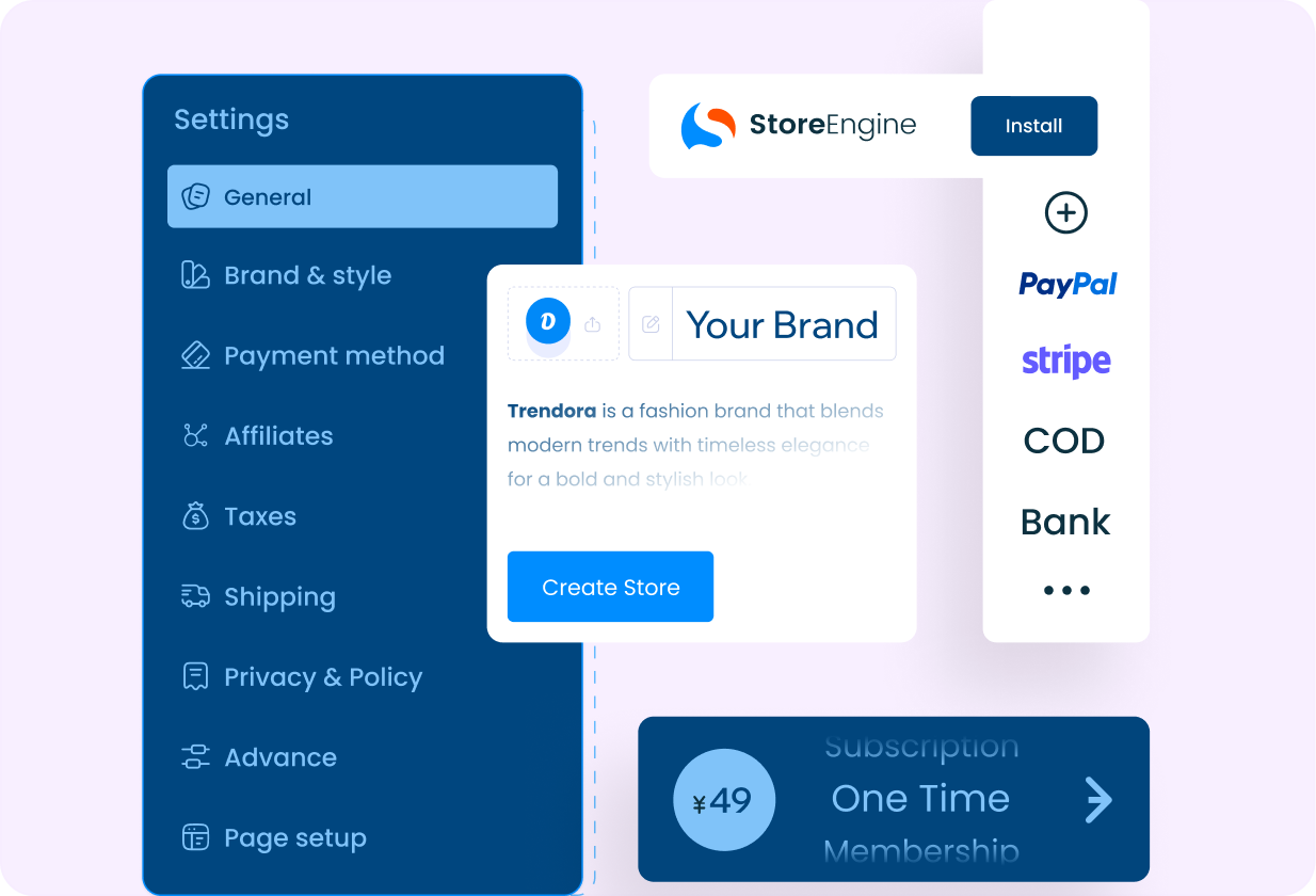Install StoreEngine, configure settings, and enable payments like One-time, Subscription, Installments, or COD to start selling instantly.